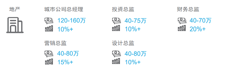 薪酬趋势:地产行业今年因个别企业出现风险而比较动荡,行业薪酬趋于平稳,上涨幅度有限。